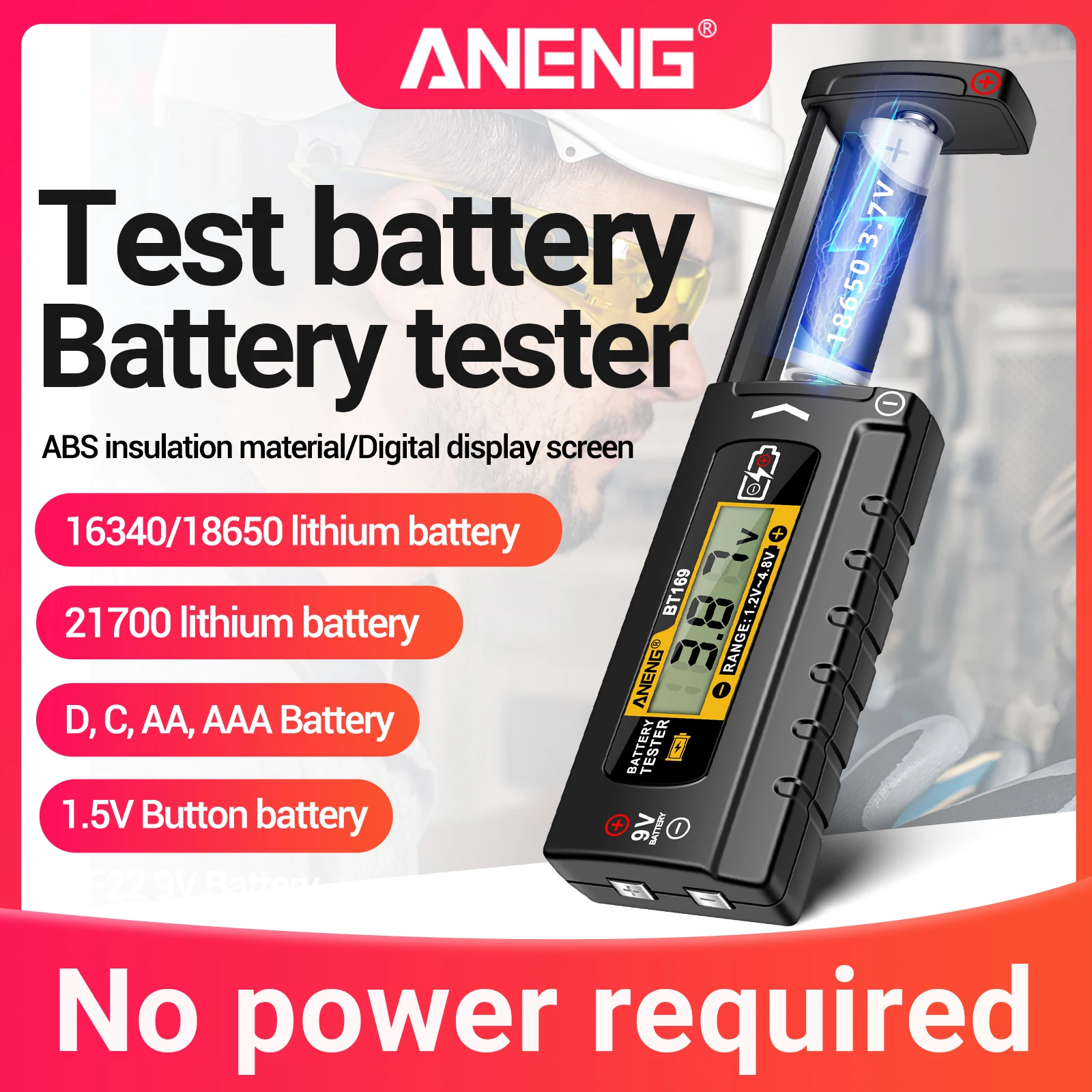 เครื่องทดสอบแบตเตอรี่ดิจิตอลอเนกประสงค์ วัดค่าแบตเตอรี่ได้อย่างรวดเร็ว สำหรับแบตเตอรี่ AA/AAA/C/D/9V/1.5V และแบตเตอรี่แบบกระดุม รุ่น ANENG BT169