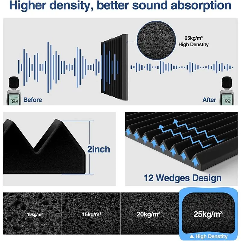 แผ่นโฟมอะคูสติก AEE6-2X12x12 นิ้ว, แผ่นโฟมกันเสียงแบบมีกาวในตัว, (12 แผ่น) - TopDealBox