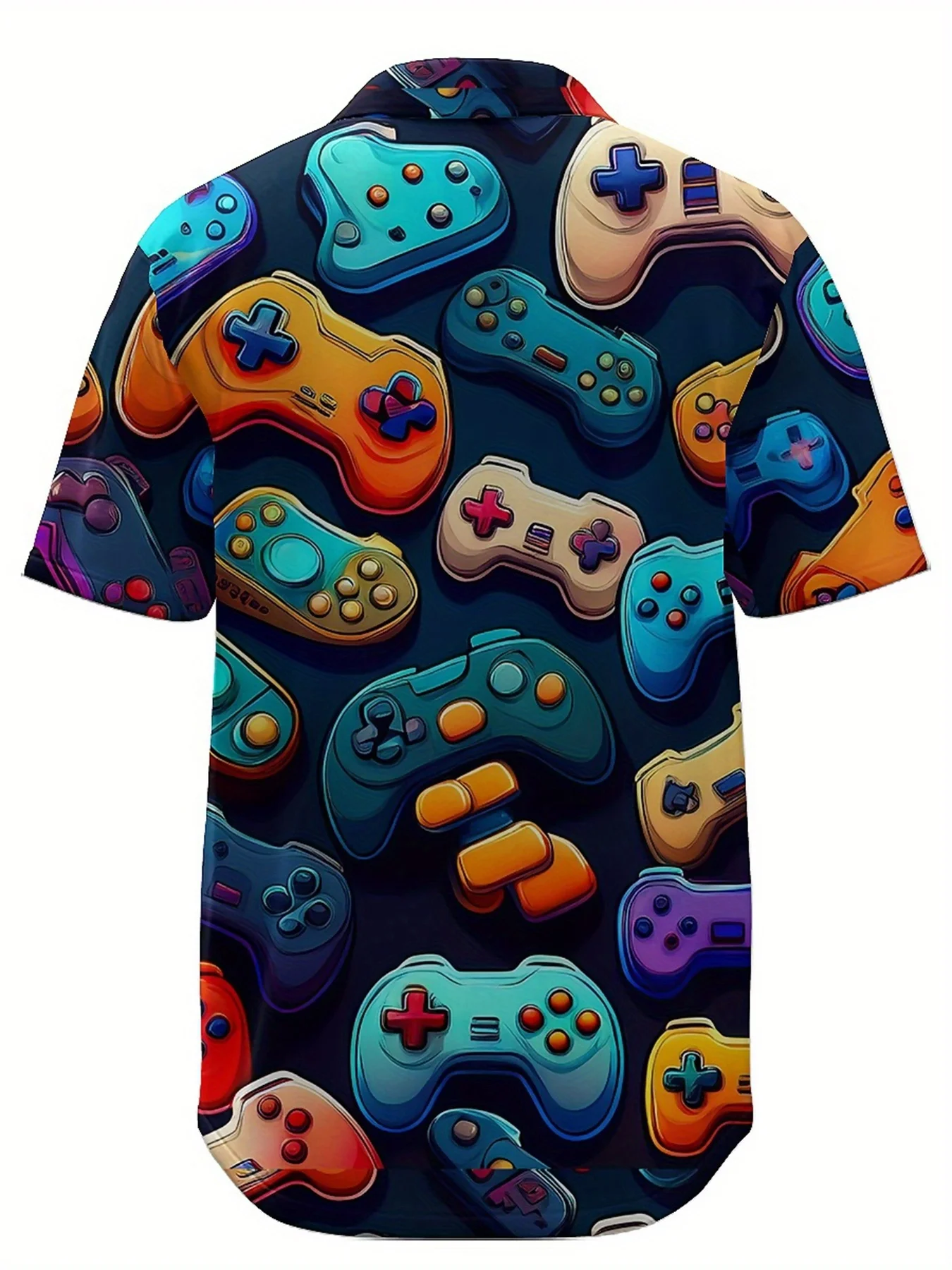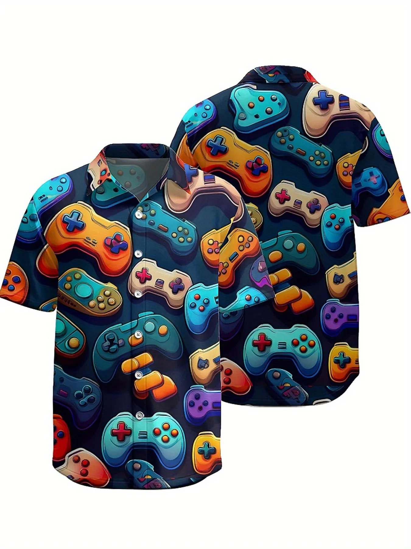 เสื้อฮาวายผู้ชายขนาดใหญ่ - รูปแบบตัวควบคุมวิดีโอเกมสีสันสดใส, เสื้อ Aloha สไตล์การ์ตูนระบายอากาศหลวม, เสื้อลําลอง - TopDealBox