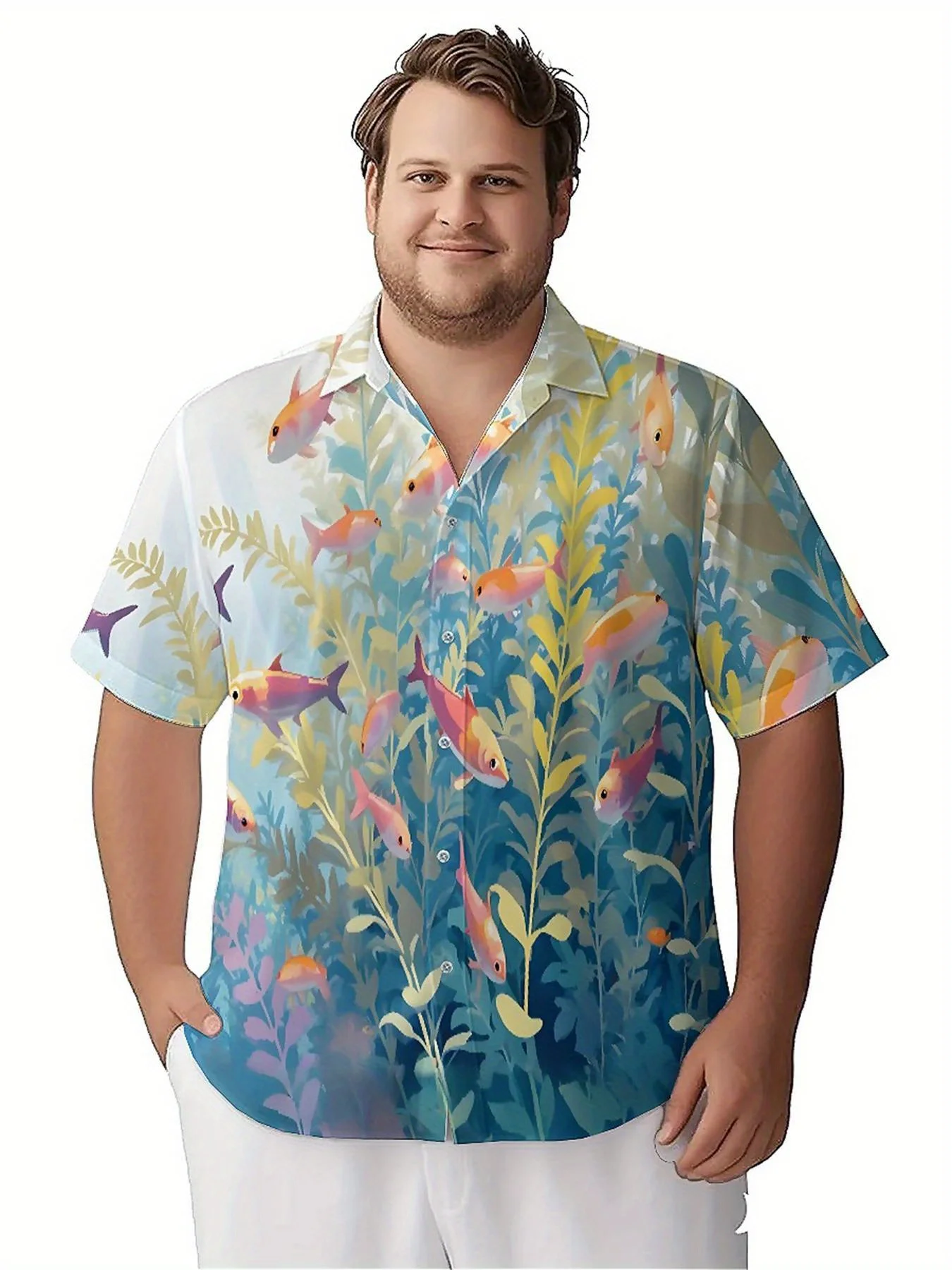 เสื้อฮาวายขนาดบวกของผู้ชายรูปแบบปลาเขตร้อน,เสื้อ Aloha ถุงทุกเพศ,เสื้อผ้าทางเลือกฤดูร้อน - TopDealBox