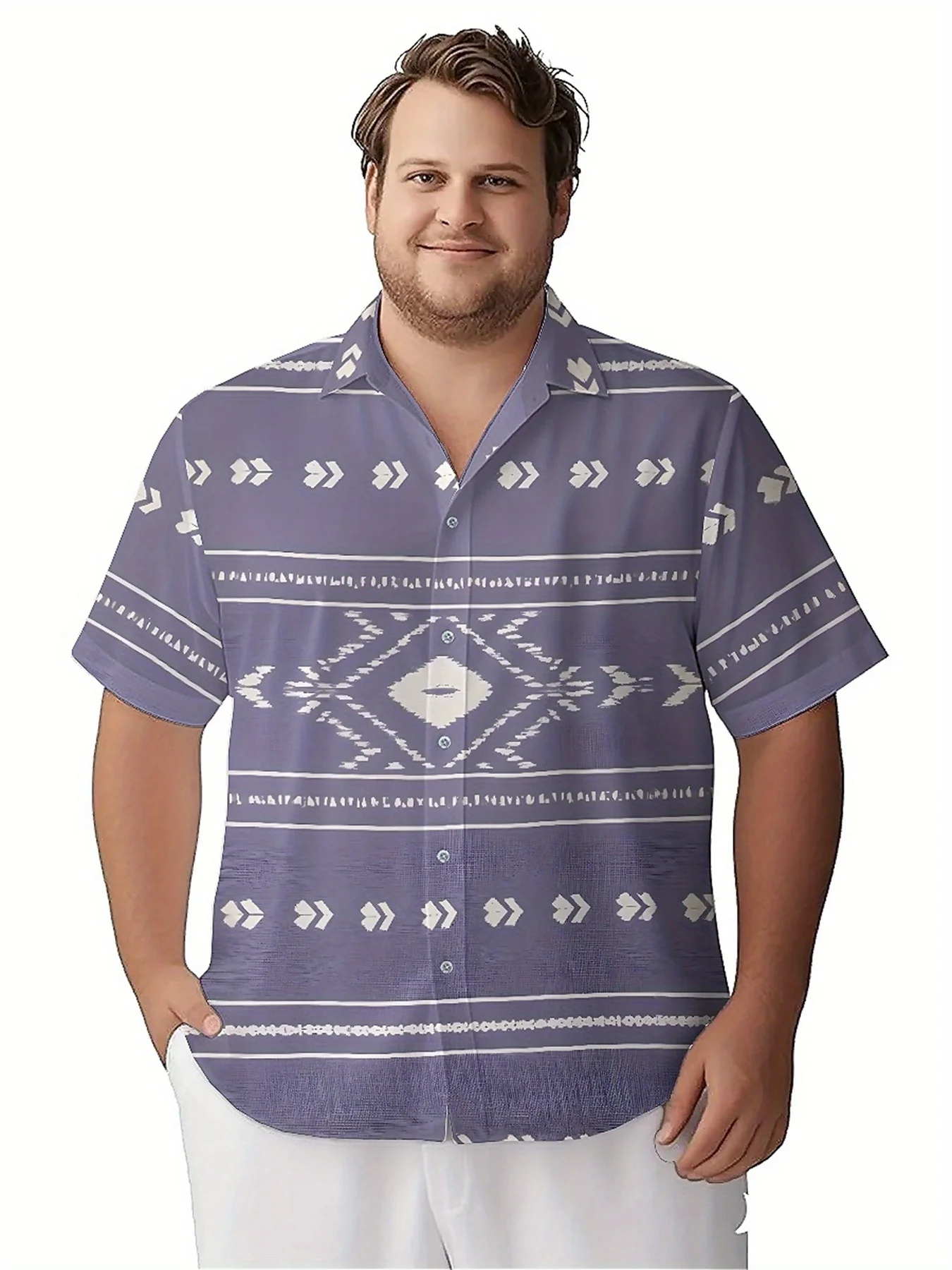 เสื้อฮาวายขนาดบวกของผู้ชายรูปแบบเรขาคณิตสีม่วง,เสื้อ Aloha Longgar Unisex,เสื้อผ้าทางเลือกฤดูร้อน - TopDealBox