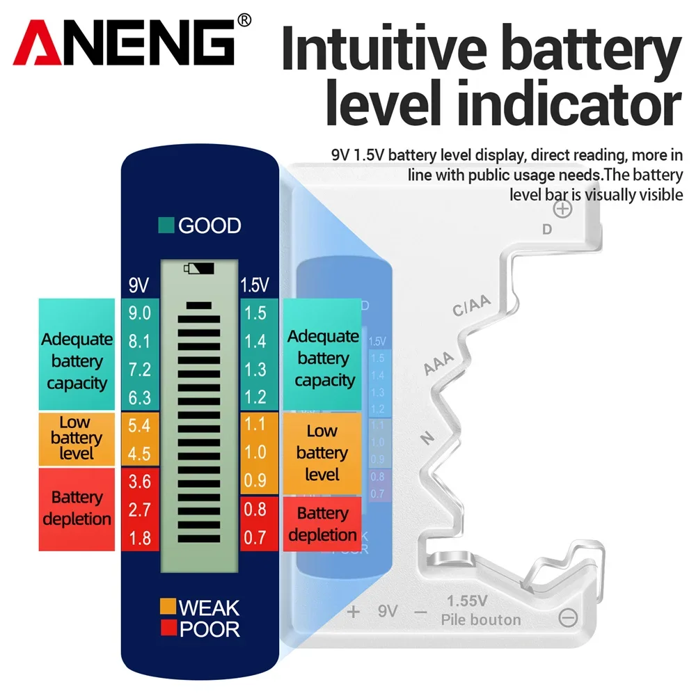 ♡ดูแบบย่อANENG BT189 เครื่องทดสอบแบตเตอรี่ 9V AAAAA ปุ่มเซลล์ Universal ในครัวเรือน LCD ดิจิตอลจอแสดงผลเครื่องทดสอบแบตเตอรี่ Power Bank Detector80.57 THBมาแรง★★★★★★4.9