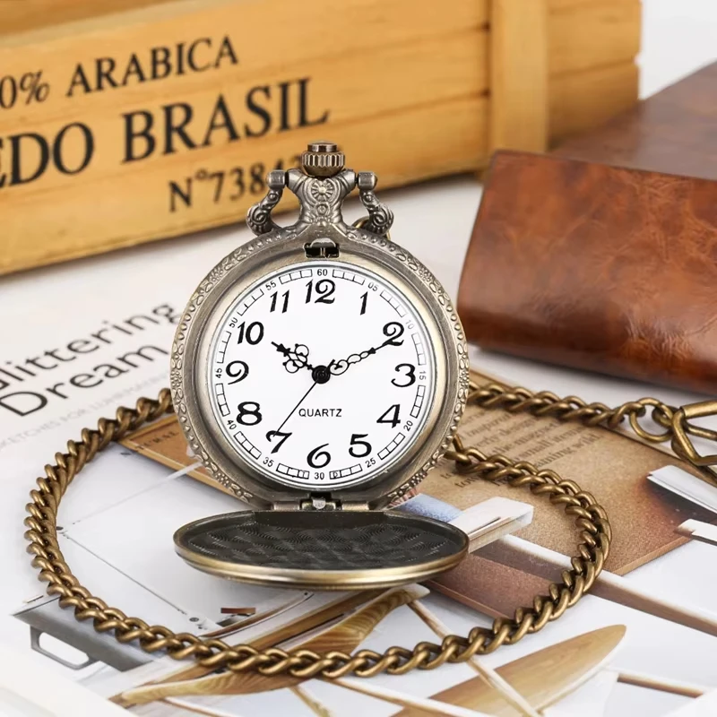 Antique Bronze อนุสาวรีย์เทพีเสรีภาพเหรียญรูปแบบสะสมควอตซ์นาฬิกาพ็อกเก็ตพร้อมสร้อยคอจี้ของขวัญประณีตสําหรับชาย Wome - TopDealBox