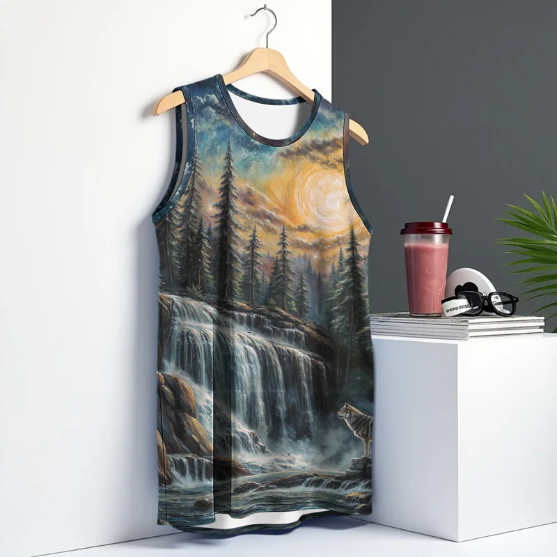 Art Men เสื้อกั๊ก Streetwear แฟชั่นรอบคอแขนกุดพิมพ์ TShirt ทุกวันกีฬากลางแจ้งฟิตเนส Running TOP สีตัดกัน - TopDealBox