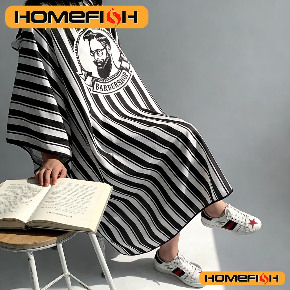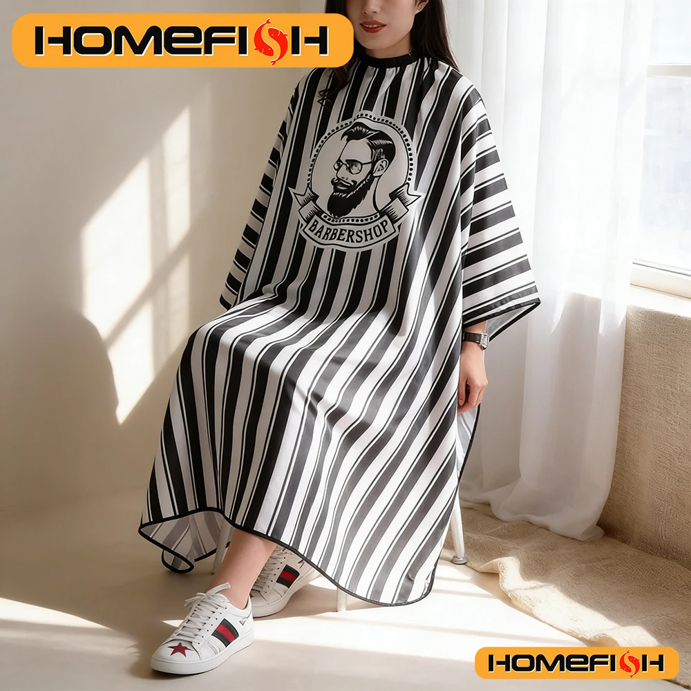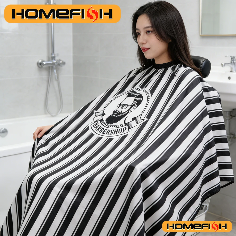 ผ้าตัดผมลายทางสำหรับผู้ใหญ่แบบไม่ติด - ผ้ากันเปื้อนกันน้ำมันสำหรับช่างทำผมในร้านทำผม - TopDealBox