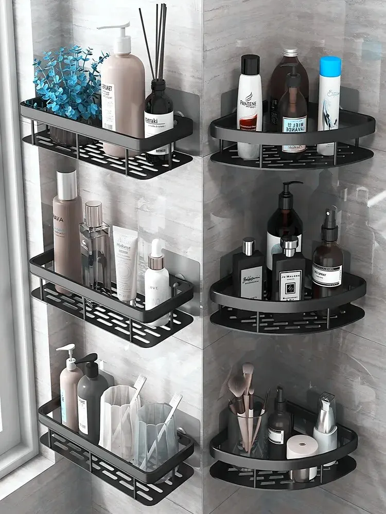 ชั้นวางของในห้องน้ำชั้นวางแชมพูออแกไนเซอร์จัดเก็บแต่งหน้าชั้นวางของในห้องน้ำอุปกรณ์ในห้องน้ำแบบไม่มีชั้นวางติดผนังเจาะ - TopDealBox