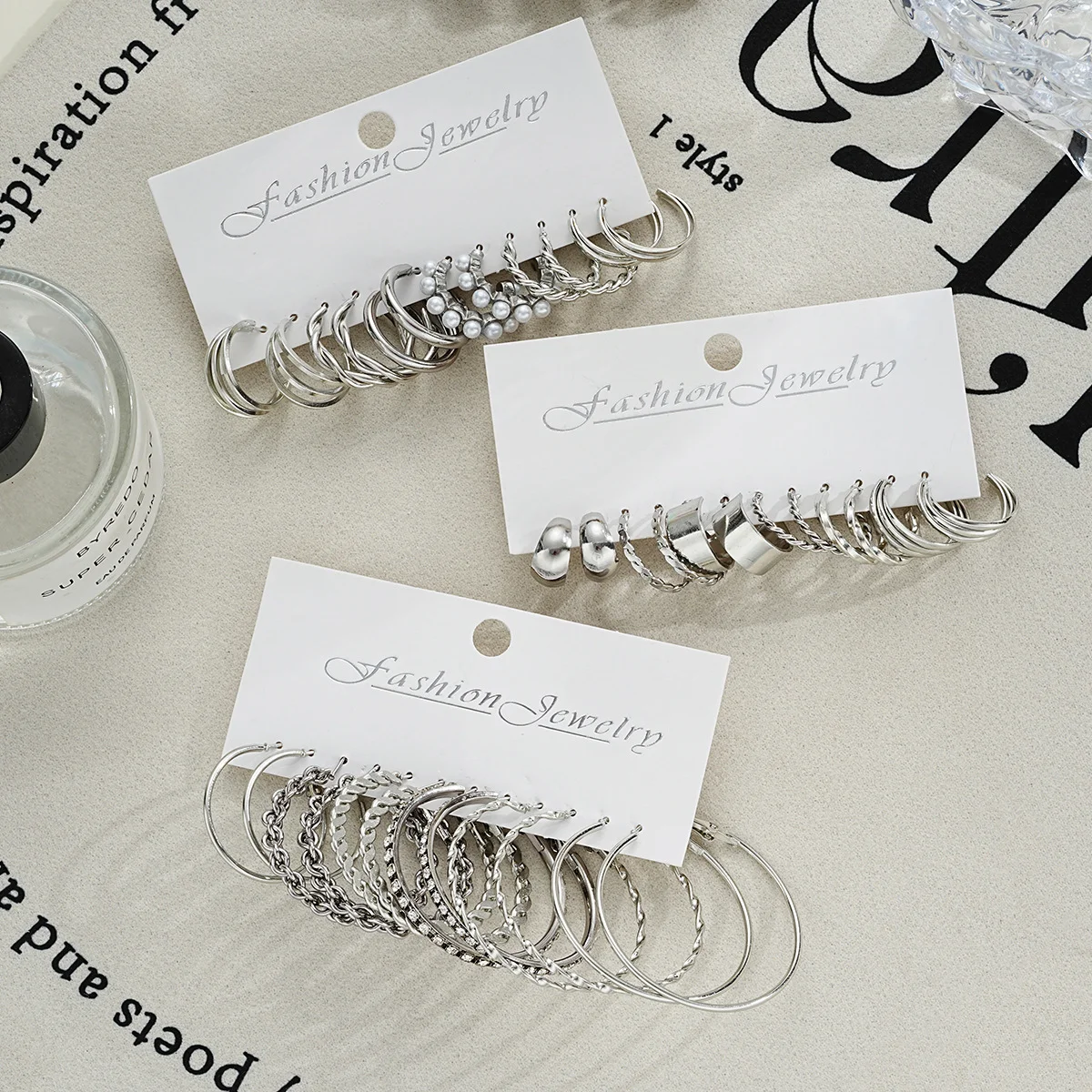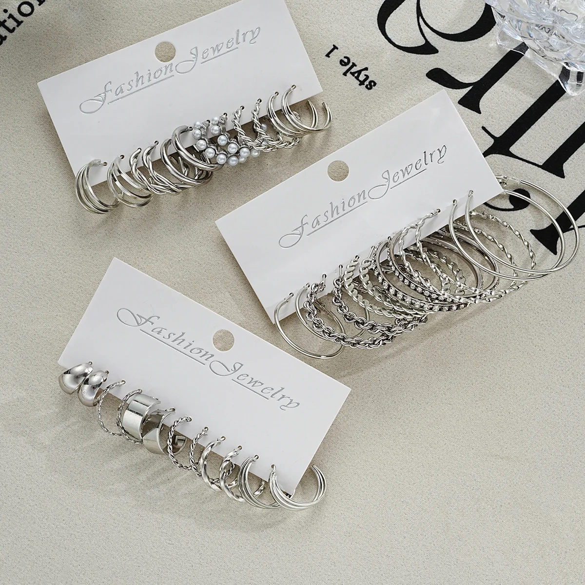 Boho Silver สี Twist Hoop ต่างหูชุด Brincos Heart Pearl Hoops Vintage โลหะเรขาคณิตต่างหูผู้หญิงอินเทรนด์เครื่องประดับ - TopDealBox