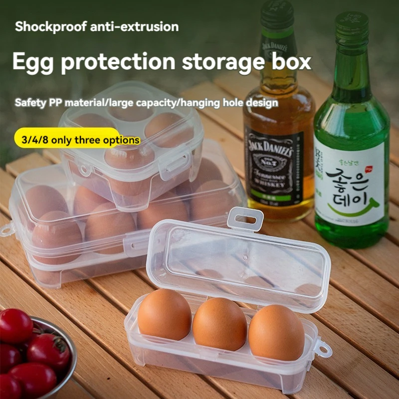 กล่องเก็บไข่แบบพกพาโปร่งใสห้องครัวคอนเทนเนอร์สําหรับ Outdoor Camping Picnic 3/4/8 กริดผู้ถือไข่ - TopDealBox