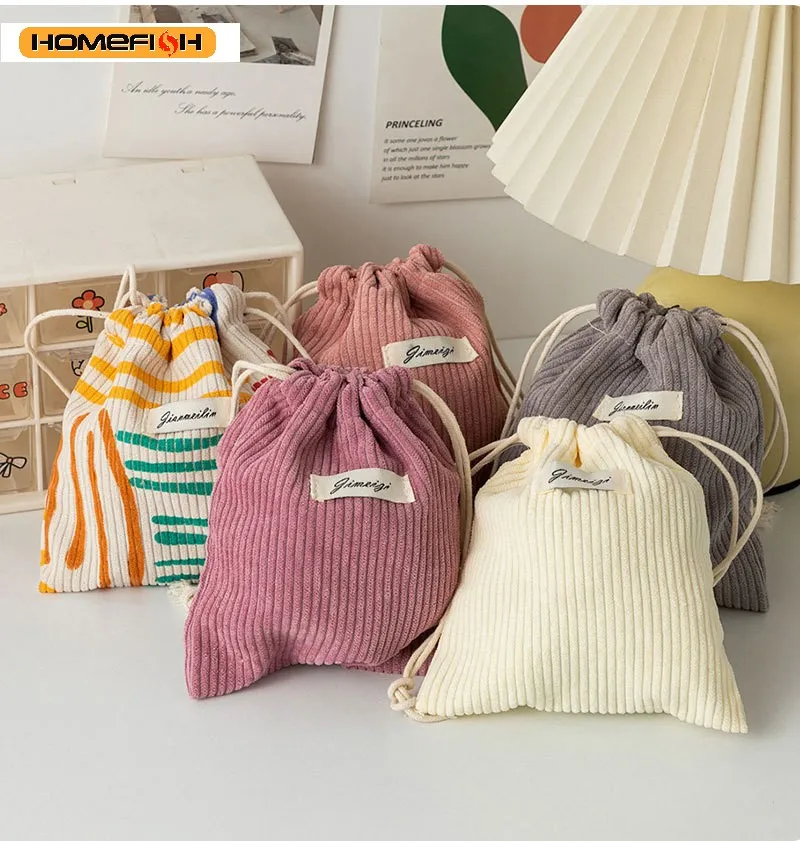 ถุงผ้าคอร์ดูรอย HOMEFISH พร้อมเชือกผูก สำหรับใส่ของขวัญคริสต์มาส ขนม เครื่องประดับ เครื่องสำอาง เหรียญ กุญแจ ถุงจัดระเบียบ ถุงเก็บของ - TopDealBox
