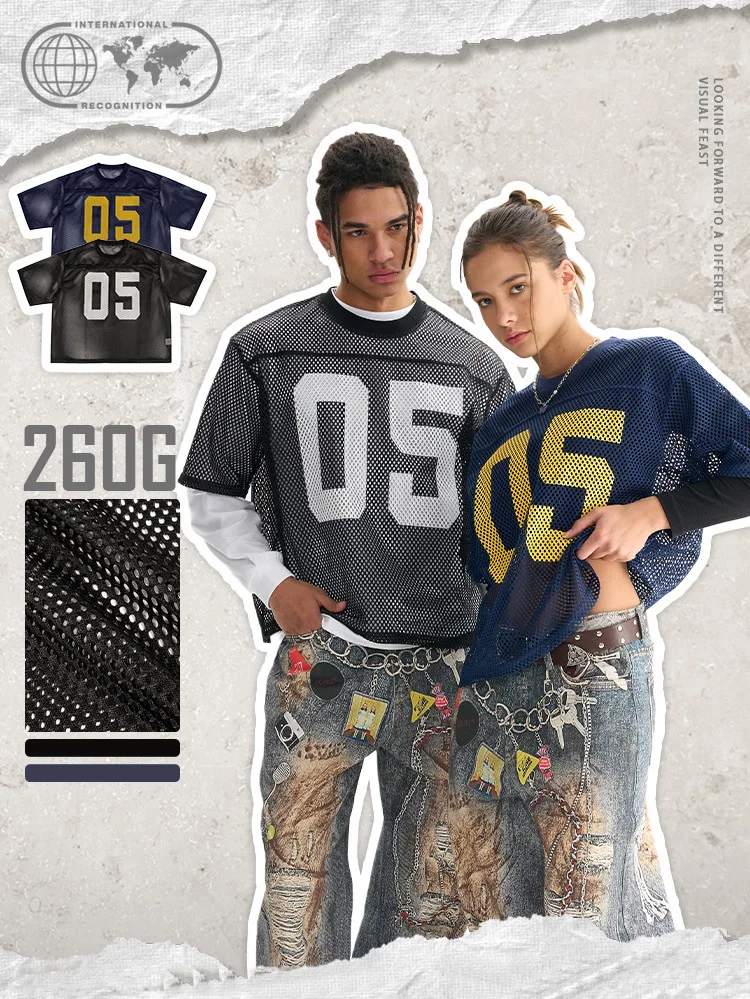 เสื้อยืดแขนสั้นผู้ชายสไตล์กีฬาแฟชั่น boxy สําหรับแจ๊กเก็ตฤดูร้อน ชุดบาสเก็ตบอลตาข่ายผู้ชายหลวมและระบายอากาศได้ - TopDealBox