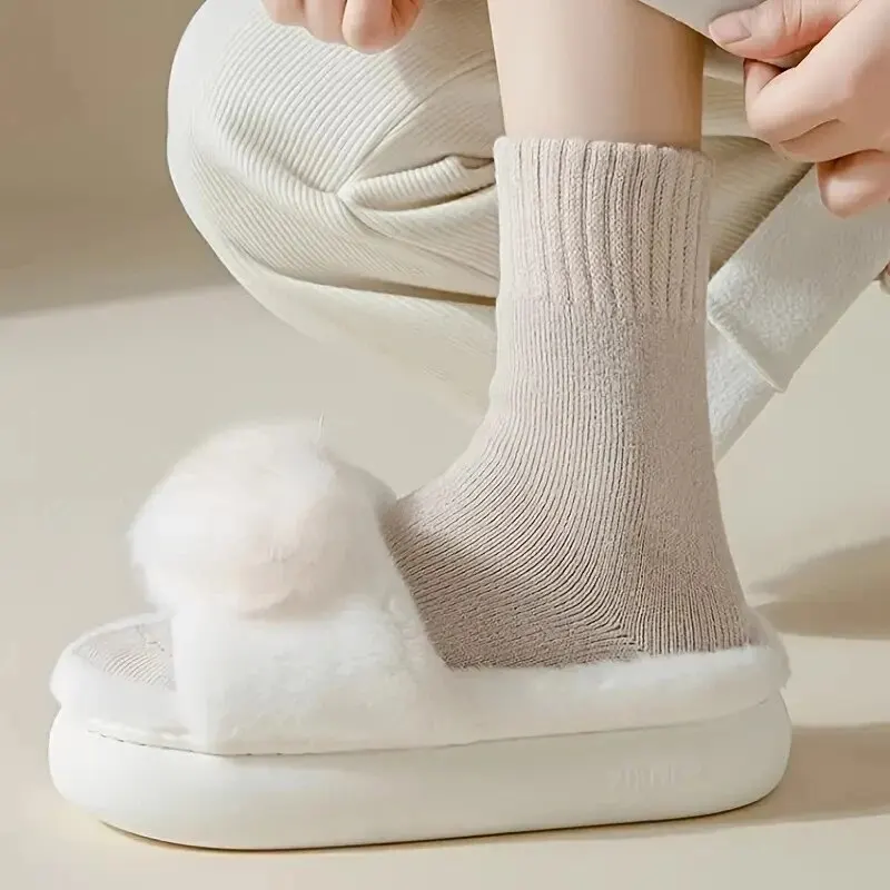 ถุงเท้าขนสัตว์ให้ความอบอุ่นสำหรับผู้หญิง3คู่ถุงเท้าผ้าหนาขนหนาสำหรับฤดูใบไม้ร่วงฤดูหนาว - TopDealBox