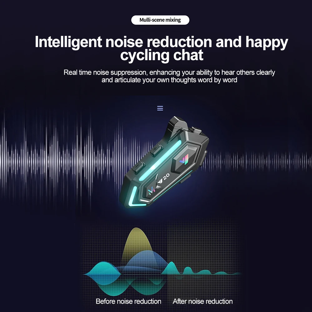 Y20 ชุดหูฟังบลูทูธหมวกกันน็อคมอเตอร์ไซค์ BT5.3 แฮนด์ฟรีลดเสียงรบกวนไร้สายหูฟังกันน้ําพร้อมไฟ RGB - TopDealBox