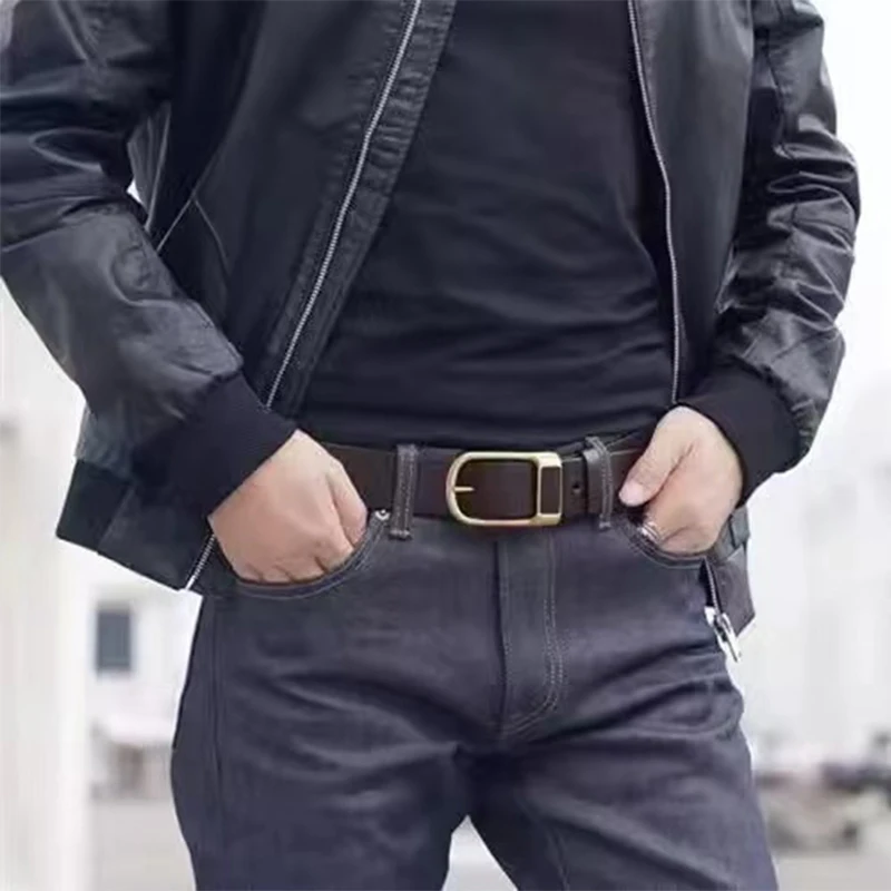 สายรัดข้อมือแนวธุรกิจหนัง PU สำหรับผู้ชายเข็มขัดลำลองหนังวัวยีนส์หัวเข็มขัดคุณภาพสูงของผู้ชายแฟชั่น - TopDealBox
