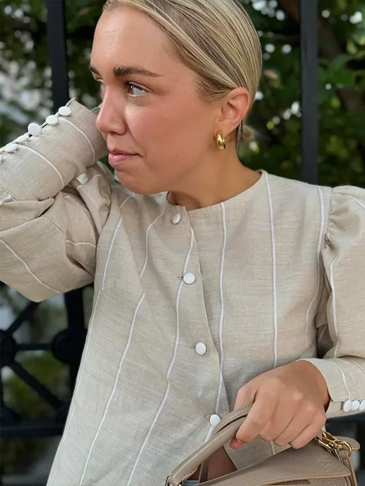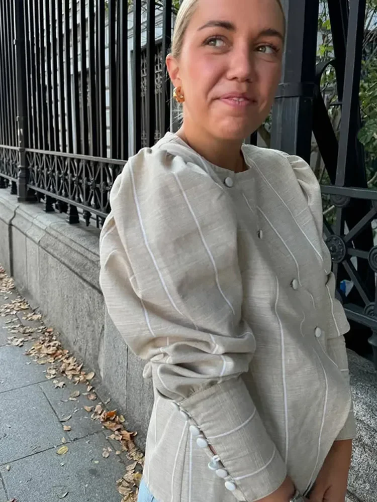 ♡ดูแบบย่อลายผู้หญิงสบายๆ Lace Up เสื้อแฟชั่น O คอยาวแขนยาว Single-breasted เสื้อหลวม 2025 ฤดูใบไม้ผลิใหม่หญิงเดินทางเสื้อ328.36 THBมาแรง★★★★★5.0