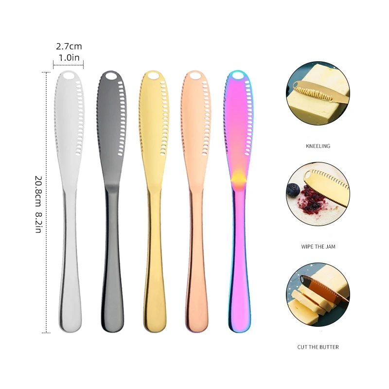 มัลติฟังก์ชั่มีดเนยพร้อมชีสขนมหวาน Jam มีดช้อนส้อมสแตนเลสเครื่องมือห้องครัว Toast ขนมปังมีดบนโต๊ะอาหาร - TopDealBox
