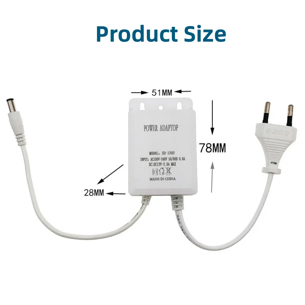 DC12V กล้องเฝ้าระวังไฟฟ้า2A, อะแดปเตอร์แปลงไฟฟ้า LED ลวดคู่กันน้ำใช้กลางแจ้งมีปลั๊กเสียบแบบยุโรปเพื่อความปลอดภัยปลั๊กตัวแปลง - TopDealBox