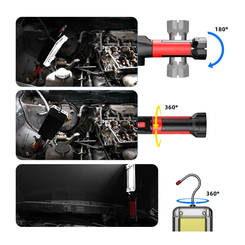 ไฟสปอตไลท์แบบชาร์จไฟได้ COB ใช้แบตเตอรี่ 2*18650 ไฟ LED พกพา พร้อมแม่เหล็ก ตะขอเกี่ยว กันน้ำ - TopDealBox