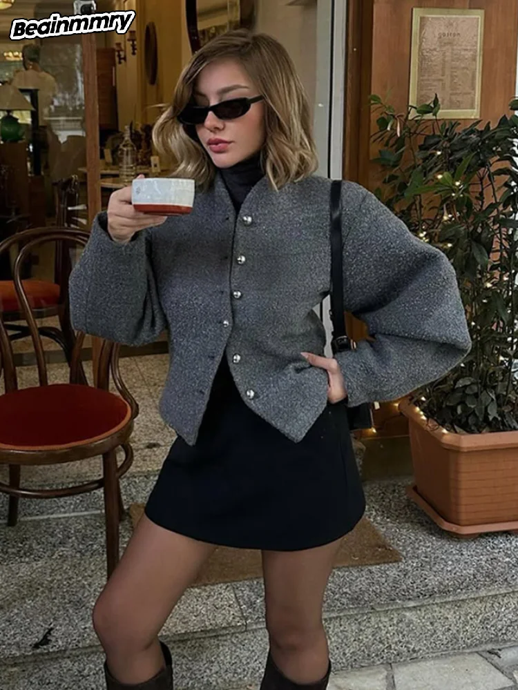 ♡ดูแบบย่อVintage Contrastลายสก๊อตพัฟแขนยาวเสื้อขนสัตว์ผู้หญิงรอบคอDouble-Breastedแจ็คเก็ตRetro 2024 หญิงOutwear 429.16 THBมาแรง★★★★★★4.8