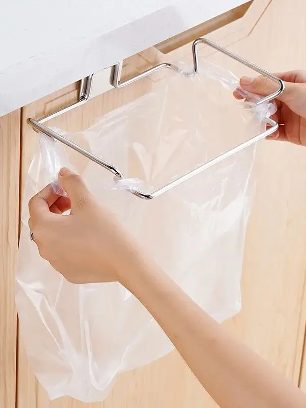 ที่ใส่ถุงขยะติดประตูตู้ครัว ชั้นวางเก็บขยะสแตนเลสสำหรับตู้เสื้อผ้า - TopDealBox