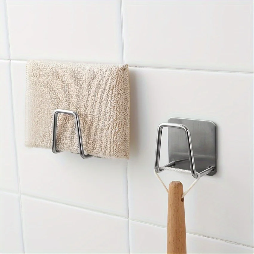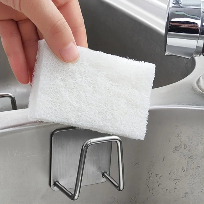 ชั้นวางฟองน้ําอ่างล้างจานสแตนเลสในครัว 1 ชิ้น, ราวตากผ้าระบายน้ําแบบมีกาวในตัว, ชั้นเก็บฟองน้ําอ่างล้างจาน - TopDealBox