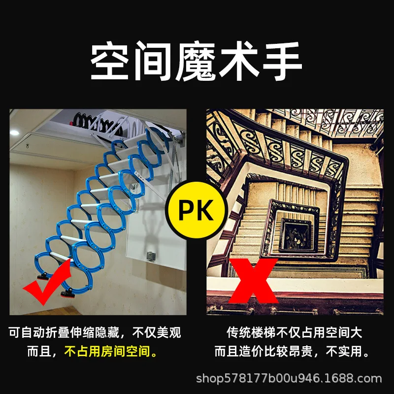 ♡ดูแบบย่อบันไดพับเก็บได้อัตโนมัติแบบรีโมทคอนโทรล โครงเหล็ก รับน้ำหนักได้ 500 กก. สำหรับห้องใต้หลังคา DIY19432.53 THBมาแรง