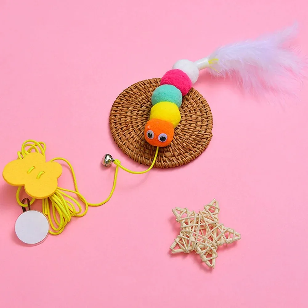 Feather Ball Caterpillar ของเล่นแมว, ของเล่นสัตว์เลี้ยง Self Hi, ของเล่นเสียงเชือกแขวนแบบยืดหดได้ - TopDealBox
