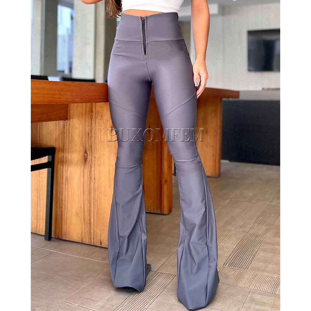 ยืดหยุ่นซิป Flared Tights SLIM FIT สไตล์วินเทจกางเกงขาตรงห่อสะโพกสบายๆทุกวันกางเกงกางเกงเอวสูงผู้หญิง
