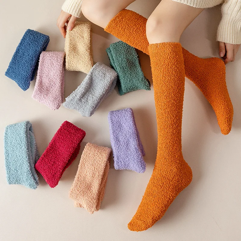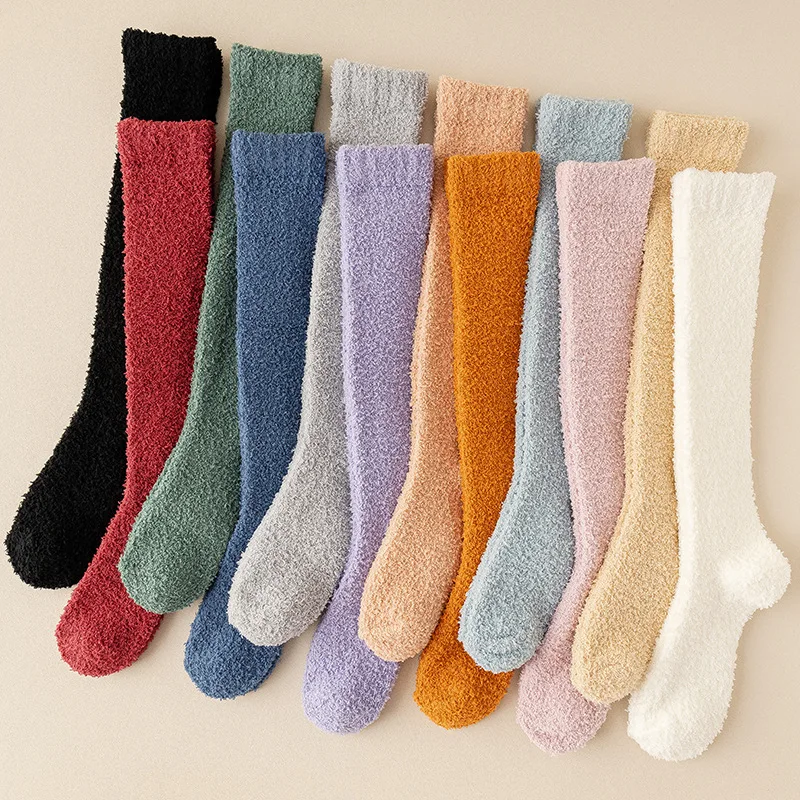 Fuzzy ถุงเท้าผู้หญิง Soft COZY Fluffy Plush ถุงน่อง WARM หนาฤดูหนาว Sleep ชั้นยาวถุงเท้านุ่มต้นขาสูงสนุกถุงเท้า - TopDealBox