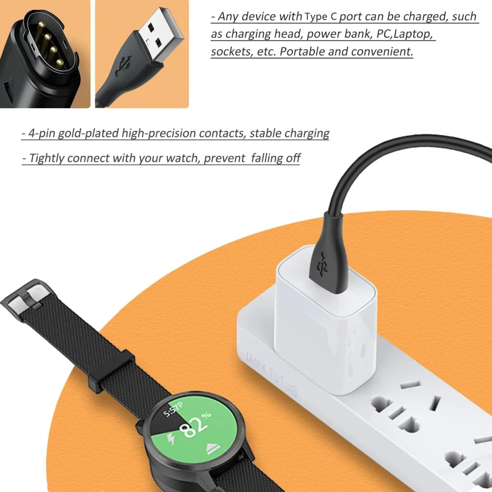 อะแดปเตอร์ชาร์จสำรองสำหรับนาฬิกา Garmin Approach S70 S60 S42 S40 S12 S10 G12, X10, Instinct 2 2S 2X ชาร์จผ่านพอร์ต USB - TopDealBox