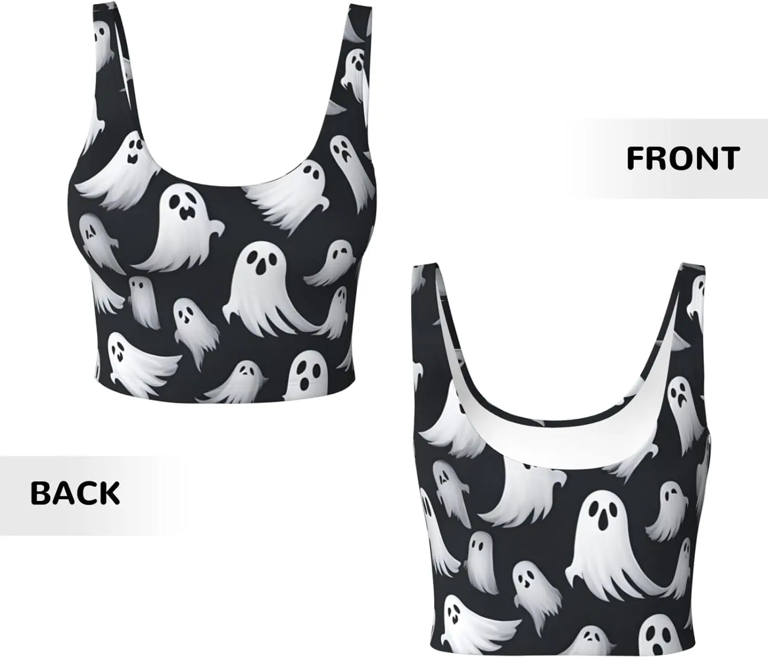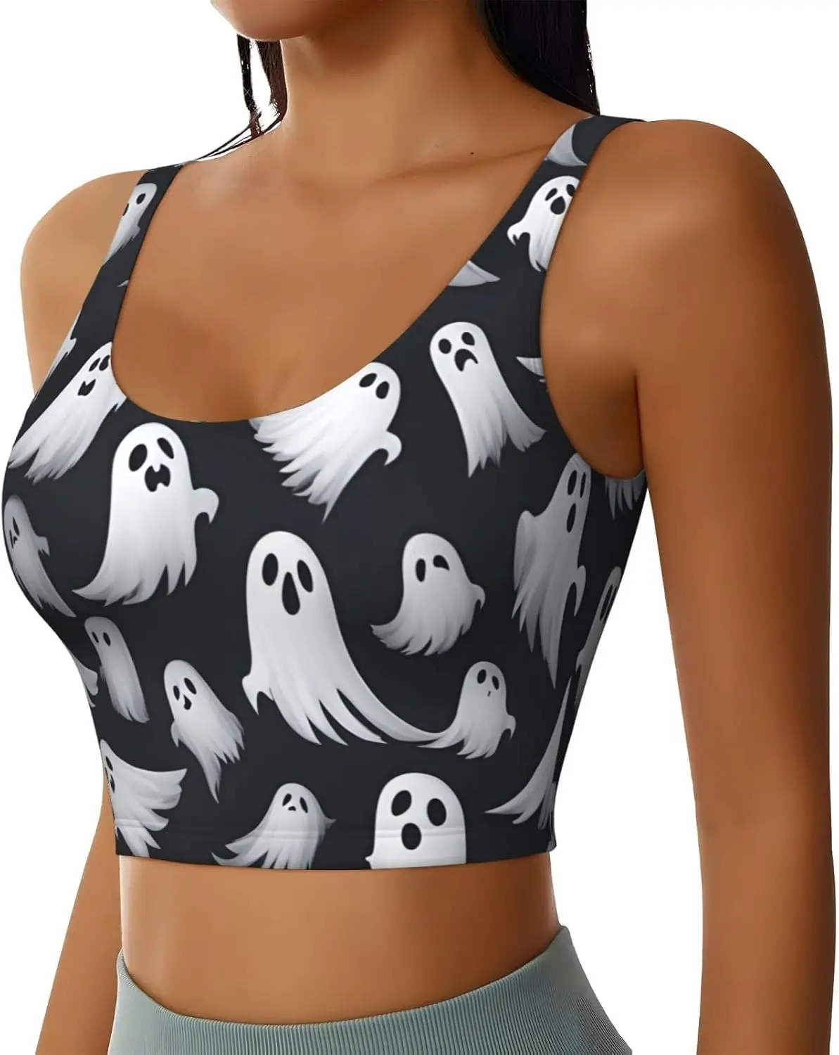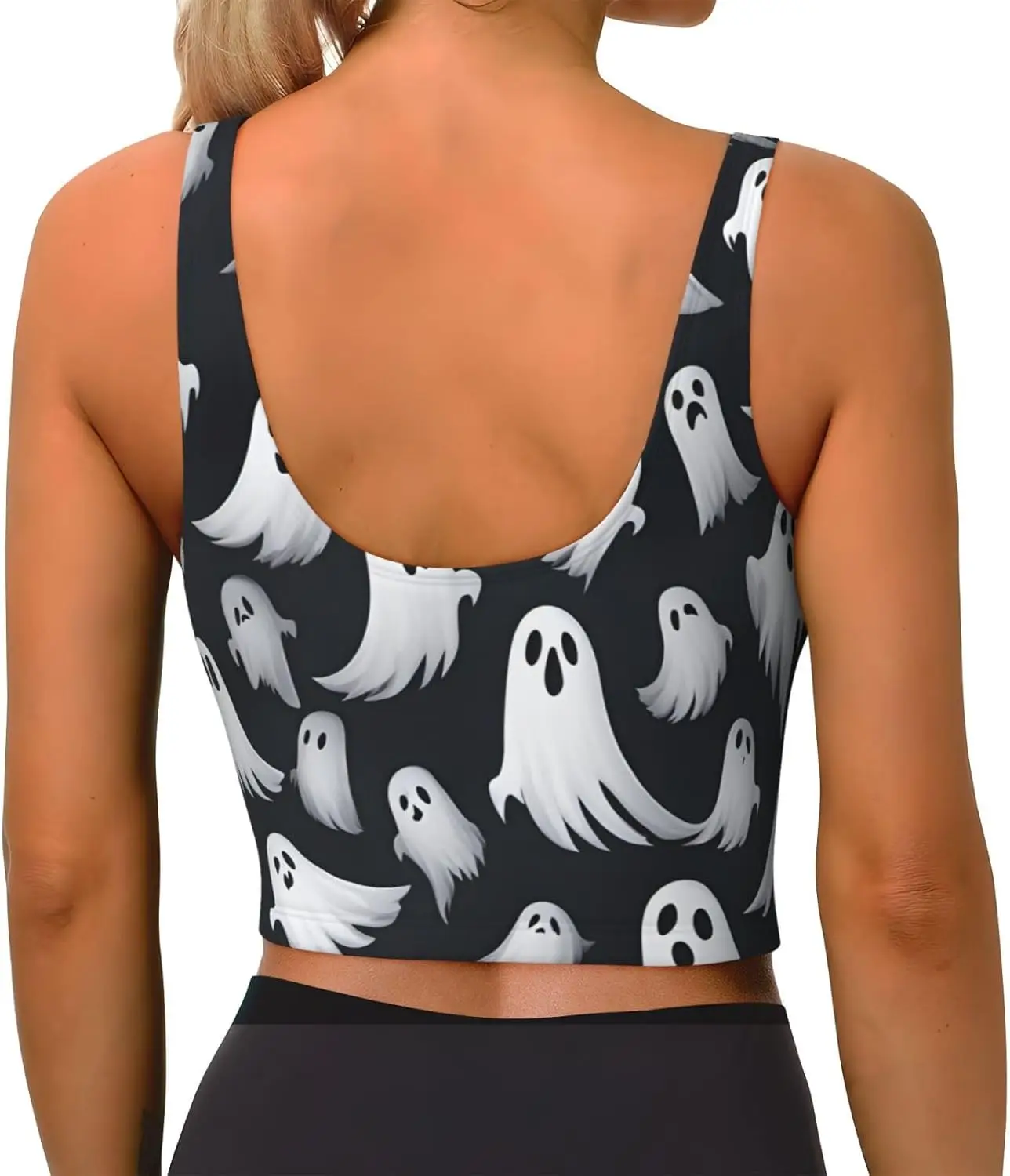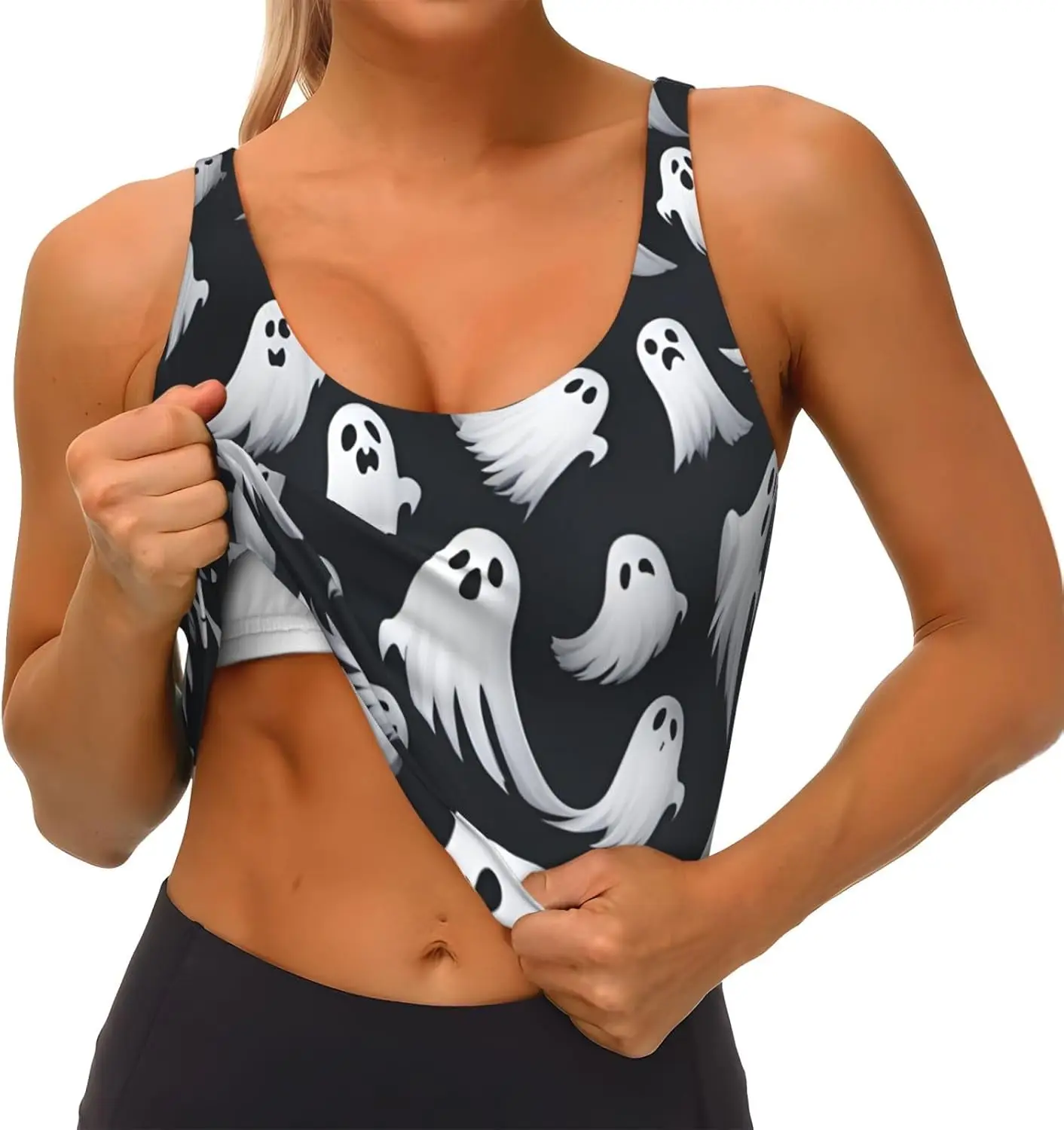 น่ารักสีขาว Ghost รูปแบบฮาโลวีน 1 พิมพ์ผู้หญิงเสื้อออกกําลังกาย Racerback เสื้อกีฬาแขนกุดสําหรับยิมกีฬาโยคะ - TopDealBox