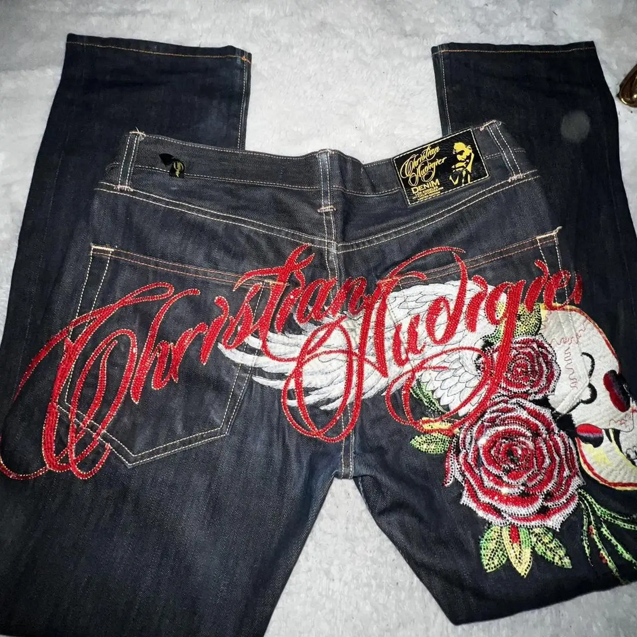 ♡ดูแบบย่อVintage Gothic ปักตรงขากางเกงยีนส์ขากว้างพิมพ์แฟชั่น Street Leisure Denim กางเกงสวย Y2k ผู้ชายเสื้อผ้า690.49 THBมาแรง★★★★★★3.8