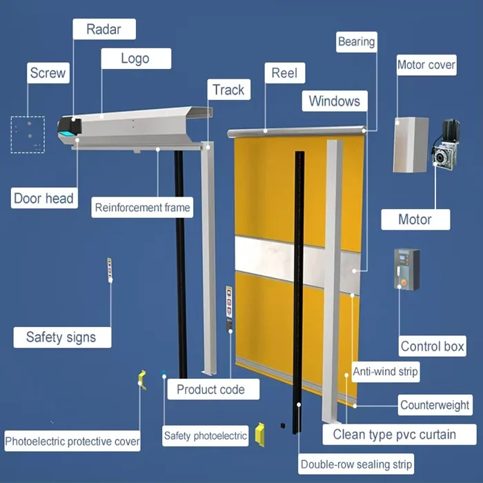 อัตโนมัติอุตสาหกรรม Hi ความเร็วสูง Pvc Quick Sheet Roller Shutter ประตูกลิ้งเร็วอย่างรวดเร็วชัดเจนด้วยหน้าต่างผ้าโปร่งใส - TopDealBox