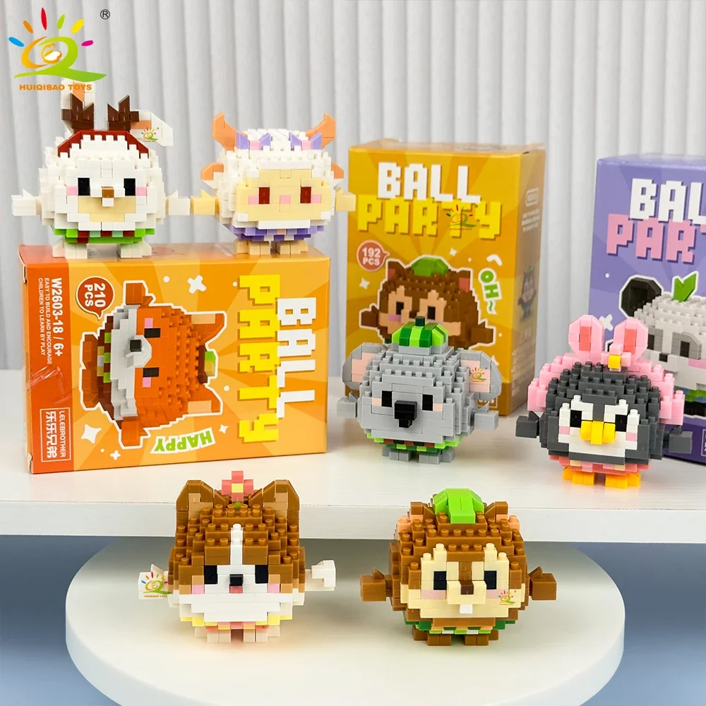 Huiqibao บล็อกตัวต่อขนาดเล็กรูปสัตว์ขนาดเล็ก3D น่ารักๆโมเดลอิฐก่อสร้างในเมืองแบบทำมือสำหรับตกแต่งโต๊ะเด็ก - TopDealBox