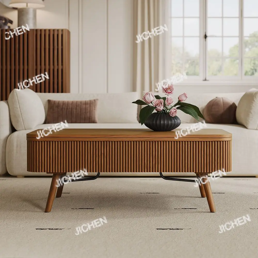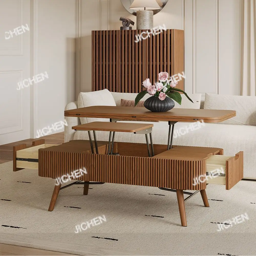 โต๊ะกาแฟไม้หรูหราทันสมัย JC เฟอร์นิเจอร์ห้องนั่งเล่น โต๊ะกาแฟแบบยกได้พร้อมลิ้นชักด้านข้าง Mesa De Centro สไตล์มินิมอล - TopDealBox