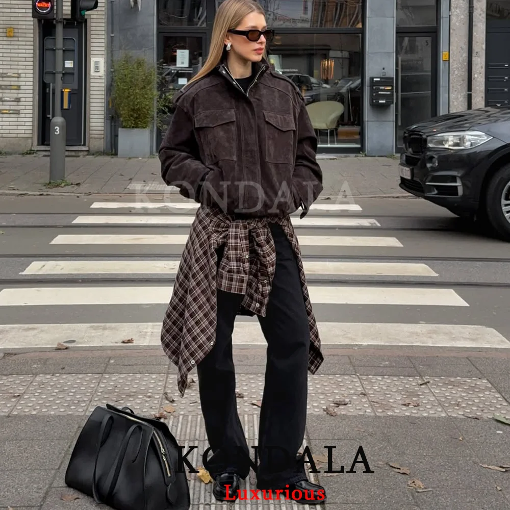♡ดูแบบย่อเสื้อเบลเซอร์โอเวอร์ไซส์สีน้ำตาล KONDALA สำหรับผู้หญิง คอวี ติดกระดุมสองแถว ทรงหลวม แฟชั่นฤดูใบไม้ร่วงปี 2025 เสื้อคลุมลำลองสำหรับสาวออฟฟิศ668.73 THBมาแรง★★★★★4.4