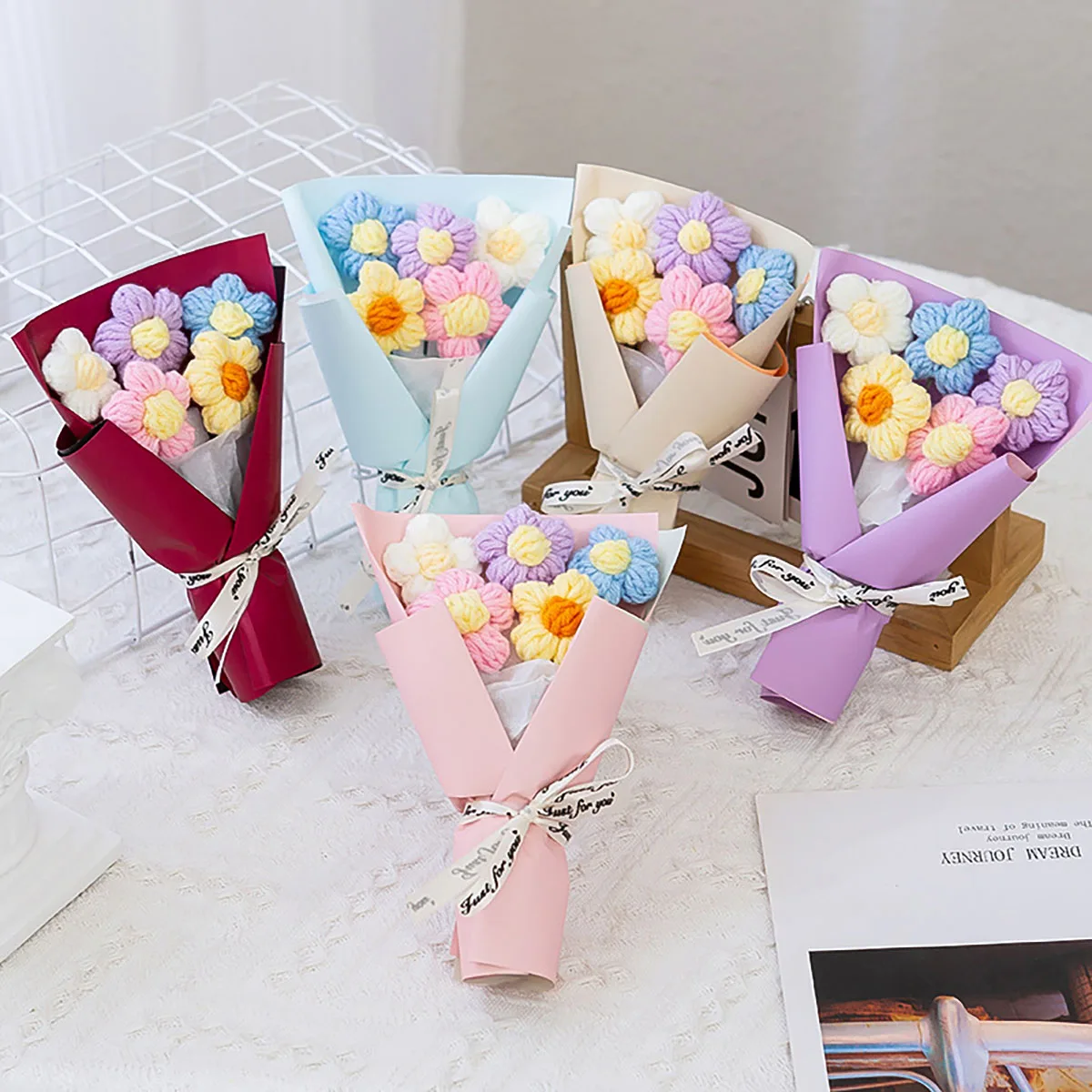 Creative Mini ถักช่อดอกไม้, ช่อดอกไม้ทําด้วยผ้าขนสัตว์, ตกแต่งดอกไม้ - TopDealBox
