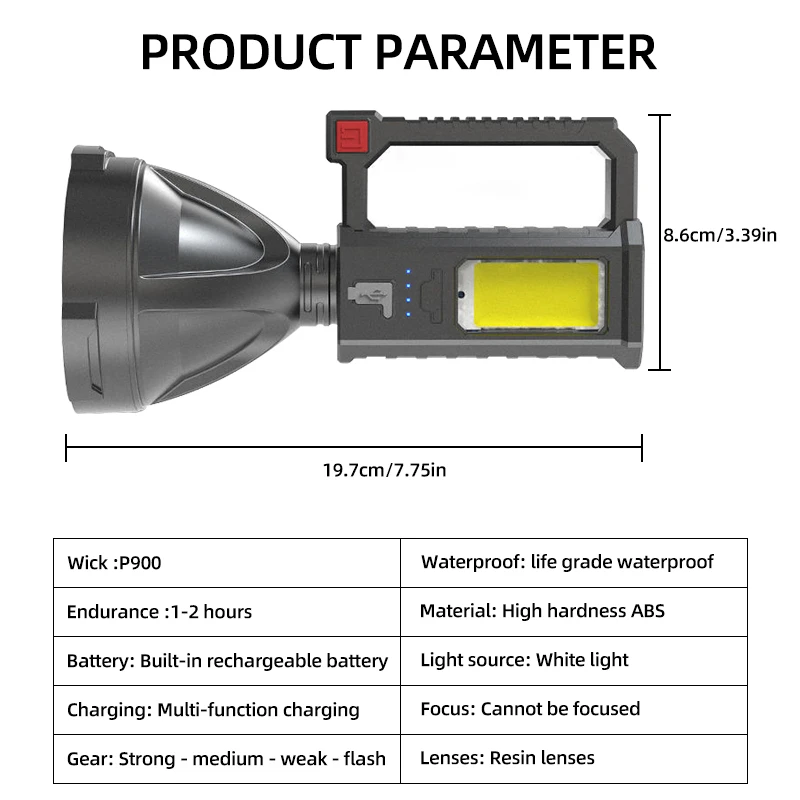 High Power LED ไฟฉายกันน้ําตกปลาโคมไฟไฟฉาย USB ชาร์จที่มีประสิทธิภาพ Spotlight Searchlight Camping โคมไฟ - TopDealBox