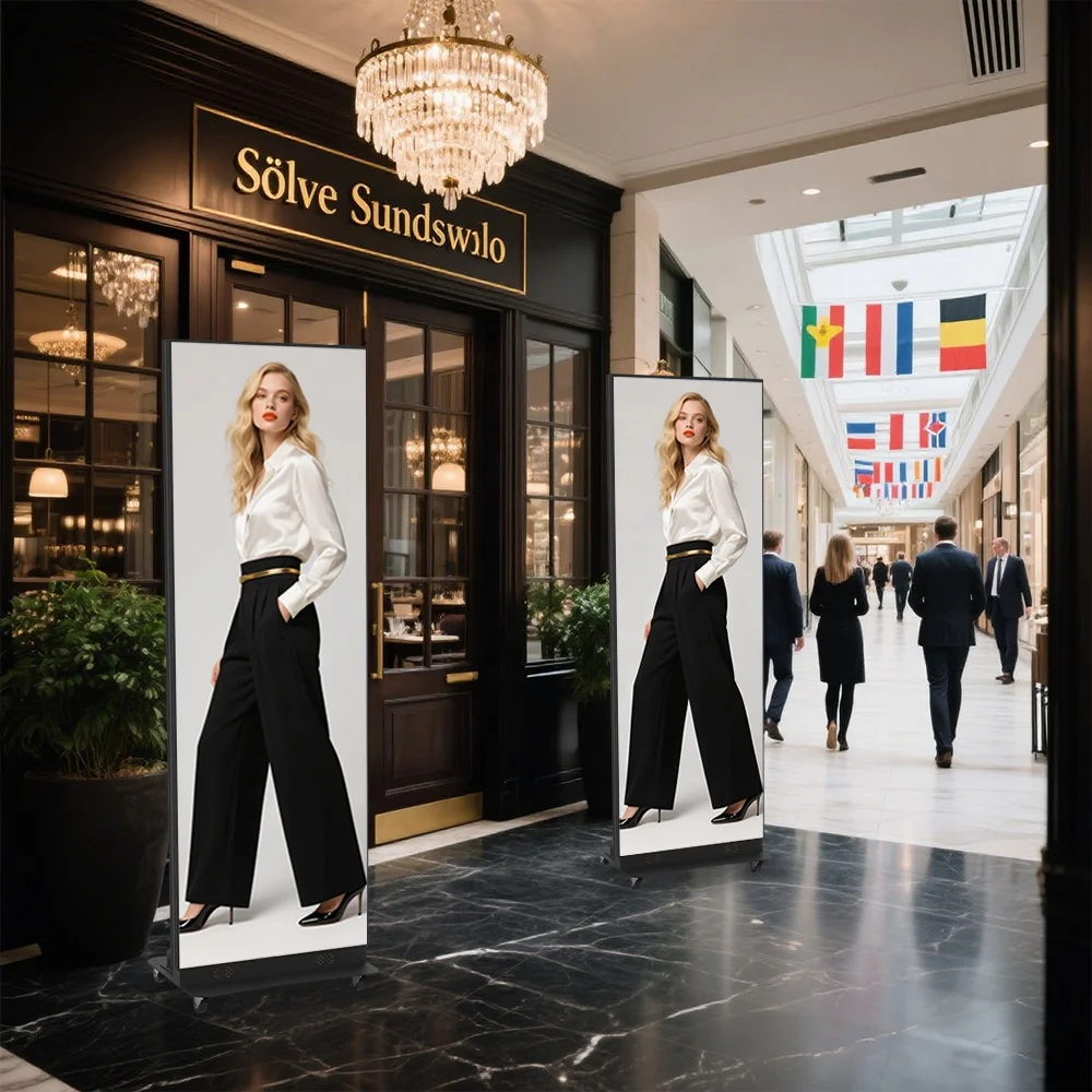 หน้าจอแสดงผลแบบพับได้ความละเอียดสูง นวัตกรรมใหม่ เครื่องโฆษณา LED แบบจอโปสเตอร์ โครงสร้างอะลูมิเนียมหล่อขึ้นรูป สำหรับโปรโมชั่นในห้างสรรพสินค้า - TopDealBox