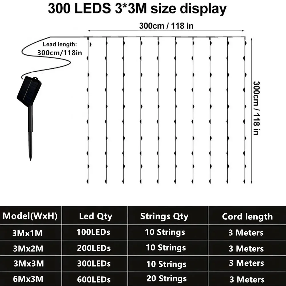 ♡ดูแบบย่อกลางแจ้งพลังงานแสงอาทิตย์ม่านแสง 300LED กันน้ํา String ไฟ Garden Yard Pavilion Fairy Garland String ไฟตกแต่งวันหยุด107.91 THBมาแรง★★★★★★4.9