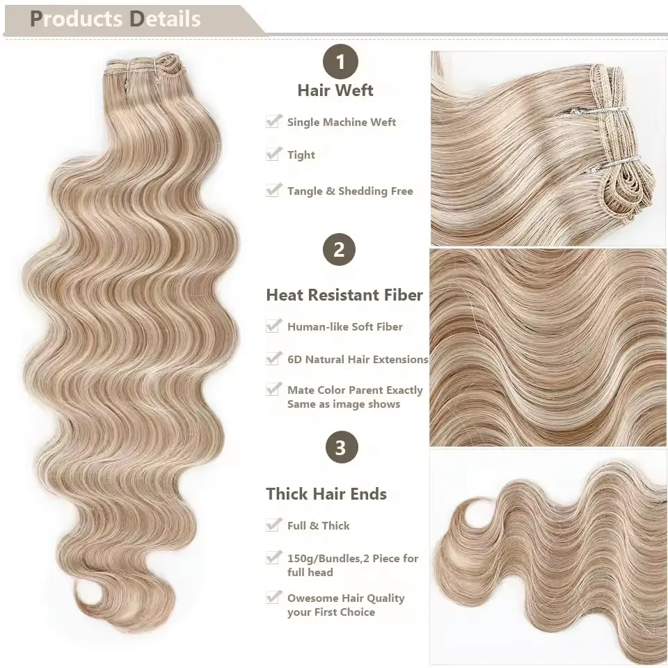 ผมปลอม Magicae ขนาด 30 นิ้ว น้ำหนัก 200 กรัม สีบลอนด์เปียโน SP12/16/613 แบบไล่สีน้ำตาล 6 # ผมต่อแบบ Body Wave วัสดุใยสังเคราะห์ทนความร้อนสูง - TopDealBox