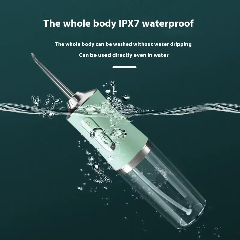 เครื่องทำความสะอาดช่องปากแบบพกพา ใช้พลังน้ำ ชาร์จผ่าน USB พร้อมหัวฉีดน้ำ 4 แบบ ความจุ 220 มล. 3 โหมด - TopDealBox