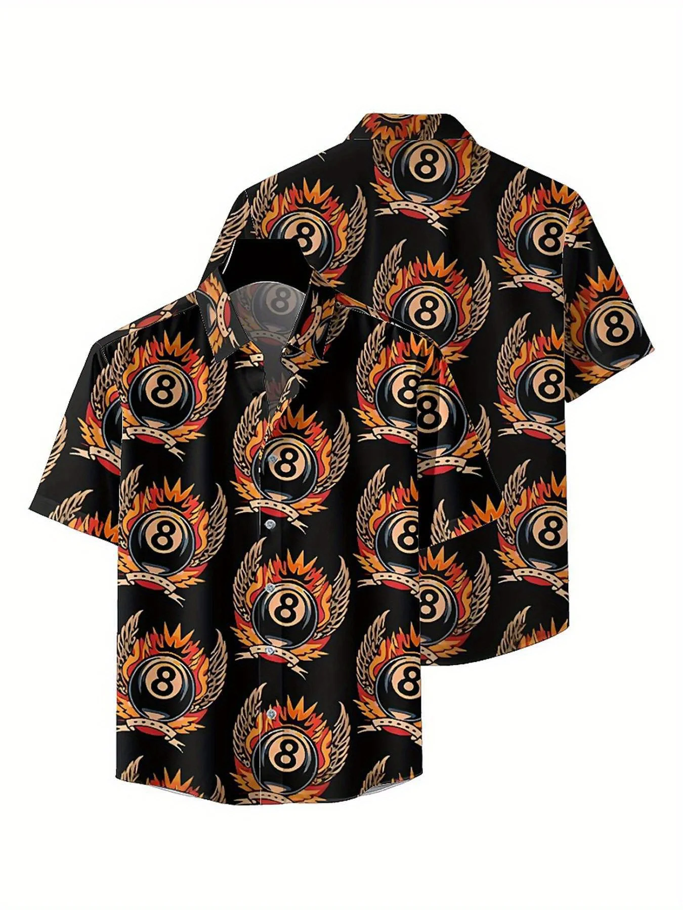 Men's Plus Size เสื้อฮาวายเปลวไฟและ 8-pin Bowling Ball รูปแบบ,Unisex Aloha เสื้อ,ใหม่ในฤดูร้อน Tops Tee,streetwear - TopDealBox