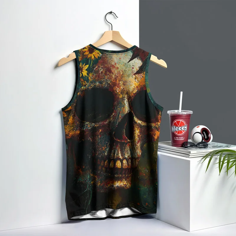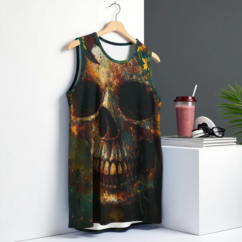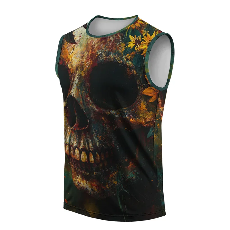Mens Skullพิมพ์เสื้อกั๊กStreetแฟชั่นรอบคอเสื้อยืดทุกวันกีฬากลางแจ้งฟิตเนสวิ่งTop Fear 2025 ล่าสุด - TopDealBox