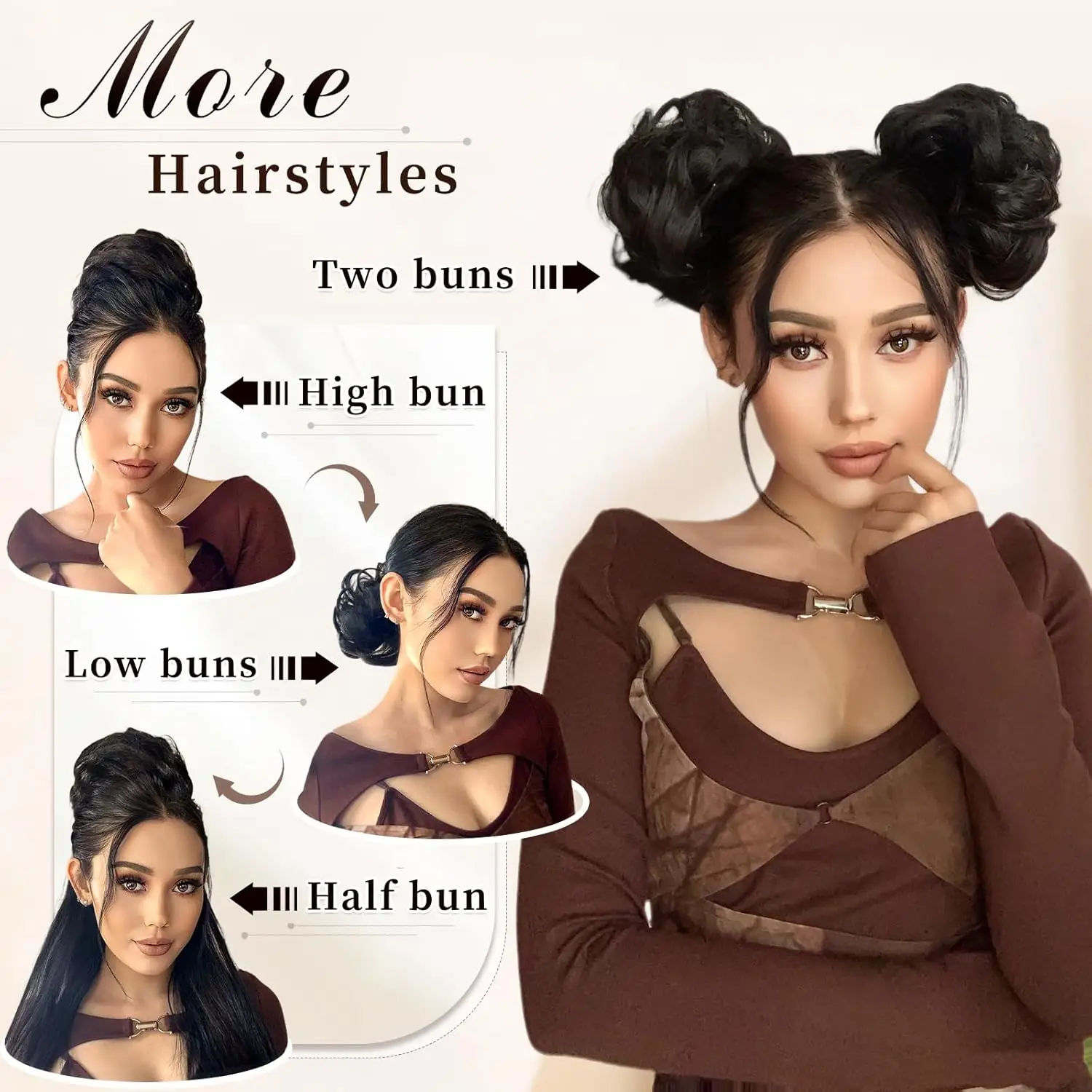สังเคราะห์ Messy Bun Hairpieces CURLY Scrunchie สีดําสีบลอนด์สีน้ําตาล Chignon Band Updo Donut สําหรับผู้หญิงผมปลอม