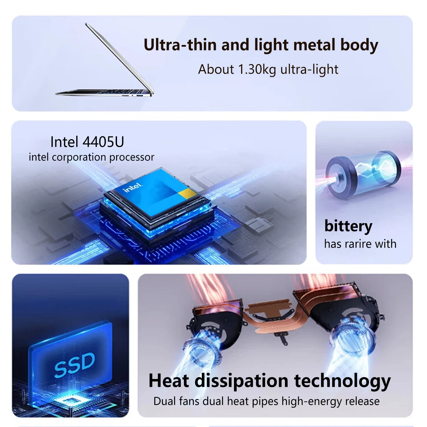 แล็ปท็อป NAIWO รุ่นบางเฉียบขนาด 14.1 นิ้ว ปี 2026 ใช้ Intel 4405U หน้าจอ IPS สำหรับงานออฟฟิศ แรม 16GB DDR3 ความจุ 1TB/2TB SSD แล็ปท็อปสำหรับการเรียนรู้ รองรับ M.2 ระบบปฏิบัติการ Windows 11 - TopDealBox