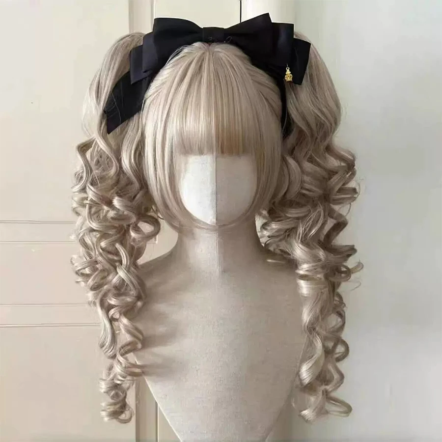 โรมันหยิกสังเคราะห์โลลิต้าผมหยิกกับเรียบโกลเด้นอะนิเมะวิกผมOverblผู้หญิงพรรคคอสเพลย์วิกผม - TopDealBox