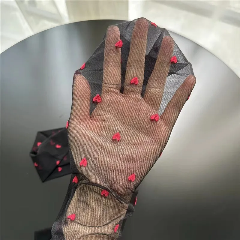ผู้หญิง Pantyhose Ultra บางรูปหัวใจสีแดงจุดถุงน่องเซ็กซี่ Breathable สบายยาวถุงน่องสีดําสําหรับผู้หญิง - TopDealBox