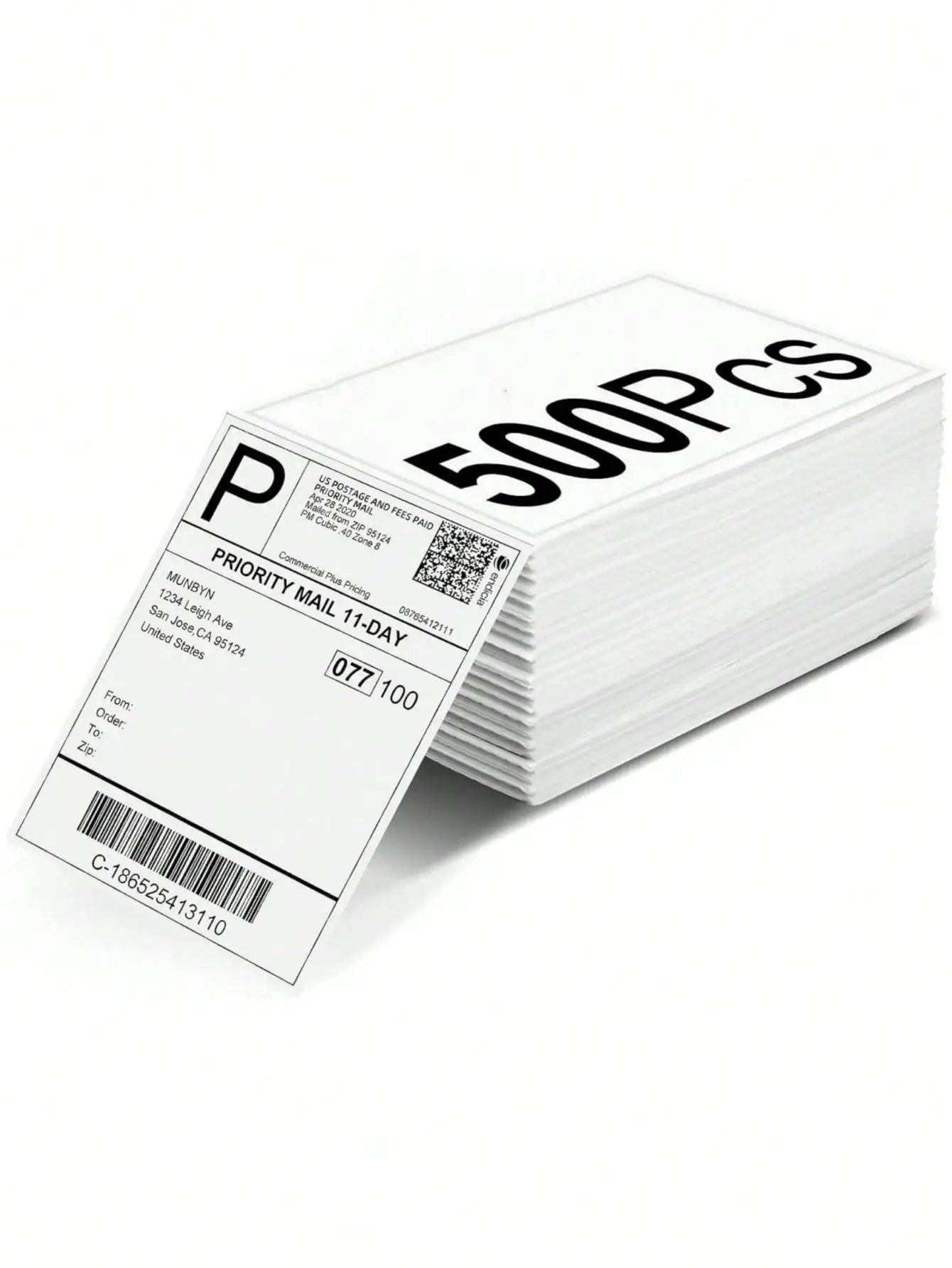 กระดาษฉลากความร้อนแบบมีกาวในตัวขนาด 4x6 นิ้ว, 500 แผ่น/กาวแบบม้วน, กันน้ําและทนน้ํามัน, ใช้สําหรับฉลากการจัดส่ง - TopDealBox