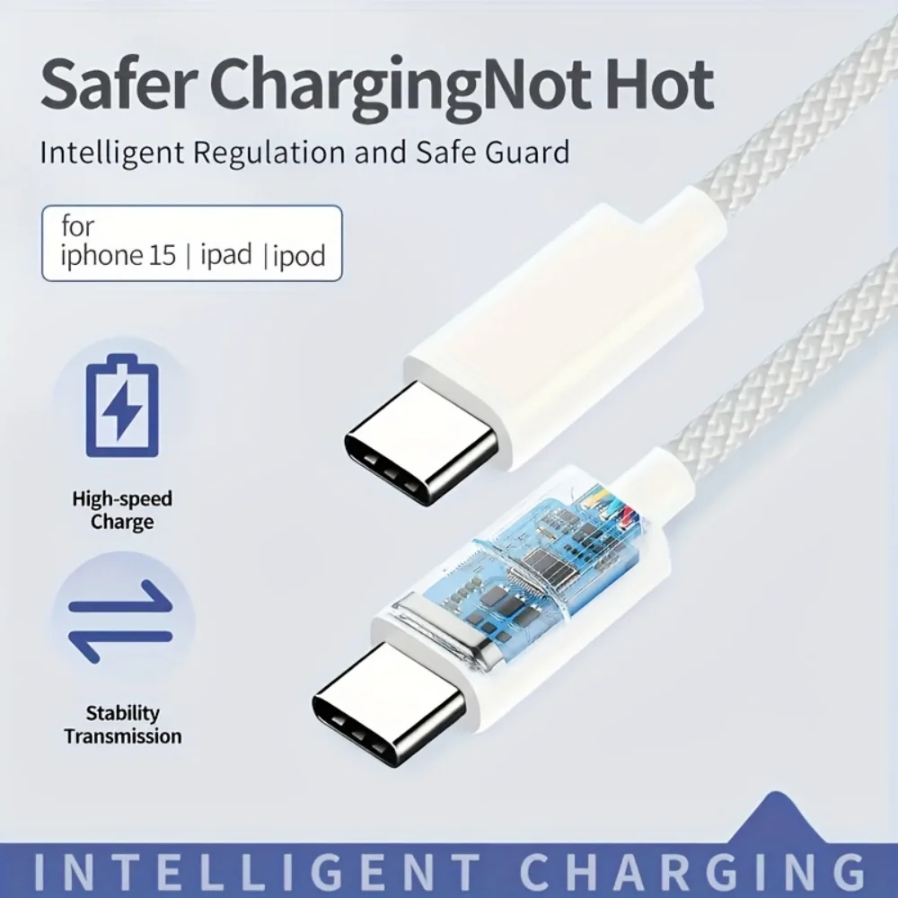 สายชาร์จเร็ว 60W USB C แบบ Type-C to Type-C รองรับการชาร์จเร็ว PD สำหรับ iPhone 16 15 Samsung Xiaomi Huawei - TopDealBox