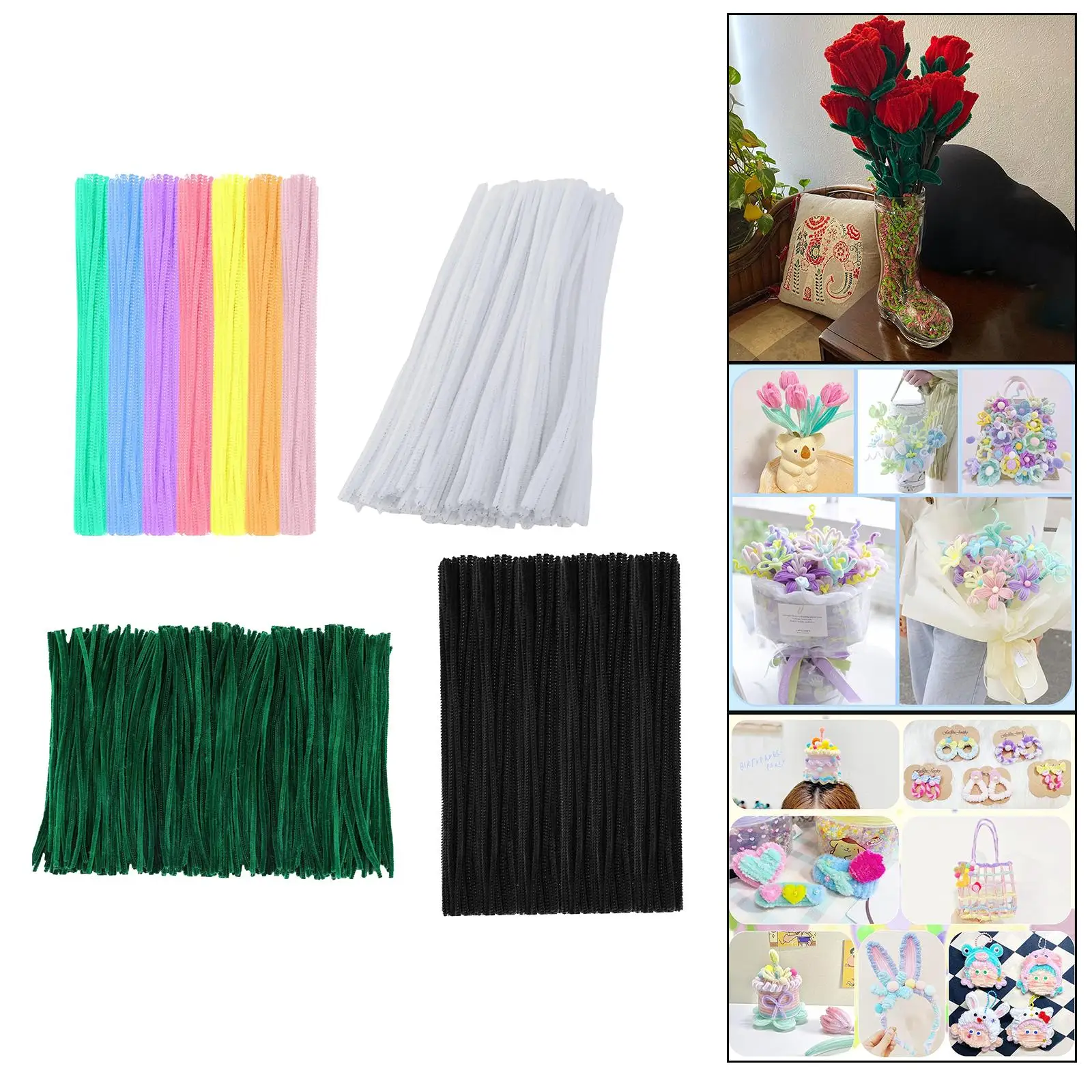ตุ๊กตากำมะหยี่ขนยาว6มม. x 12นิ้ว100ชิ้นที่ทำความสะอาดท่อแบบยืดหยุ่นของเล่นเพื่อการศึกษาสำหรับโครงการศิลปะการตกแต่งงานฝีมือแบบทำมือ - TopDealBox